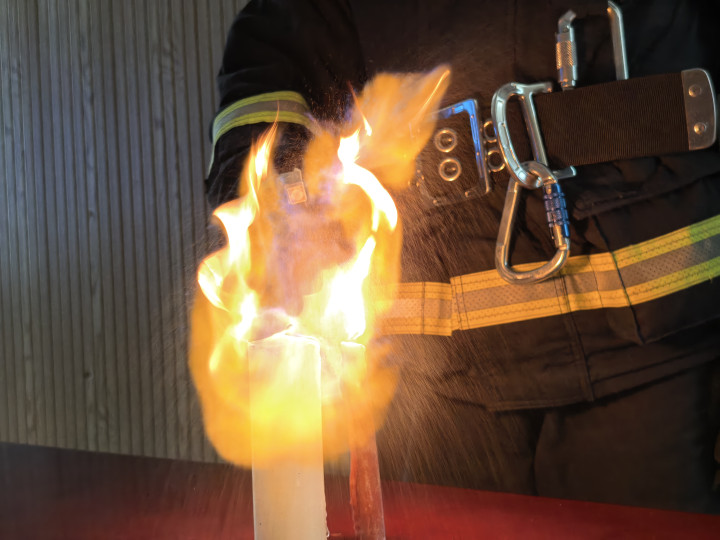 在第一个履行中,黄村消防拯救站消防员单光锋左手捧着一个蛋糕,右手捏装有95%乙醇的浅近塑料瓶,他瞄准蛋糕上燃烧的烛炬,博亚体育app按下喷嘴。就在乙醇雾气战斗到明火的瞬息,空气中猛地酿成一个宏大的火球,通盘这个词蛋糕被火焰归并。